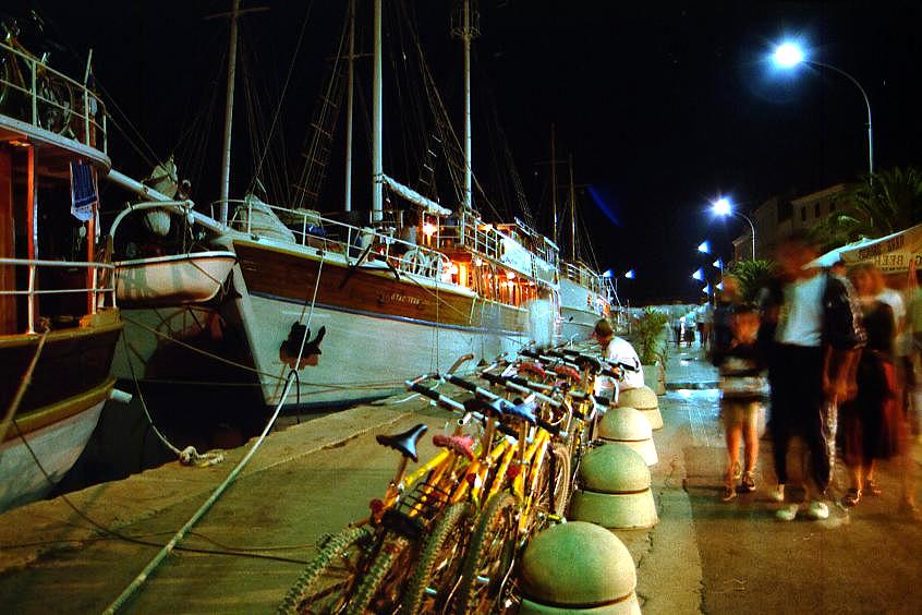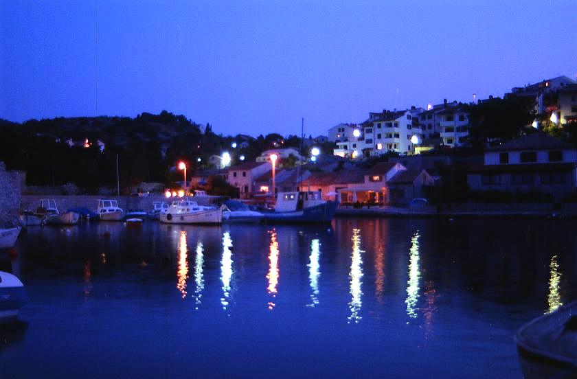 Und hier haben wir sie zum ersten mal gesehen, die Schiffe der RIVATOURS-Flotte, ein Reisebüro, daß sich auf Kroatien spezialisiert hat und auf solchen Schiffen ein- bzw. zweiwöchige Turns durch die kroatische Inselwelt anbietet. Noch kleiner Hafen auf 'unserer' Seite von Mail, natürlich auch bei Nacht